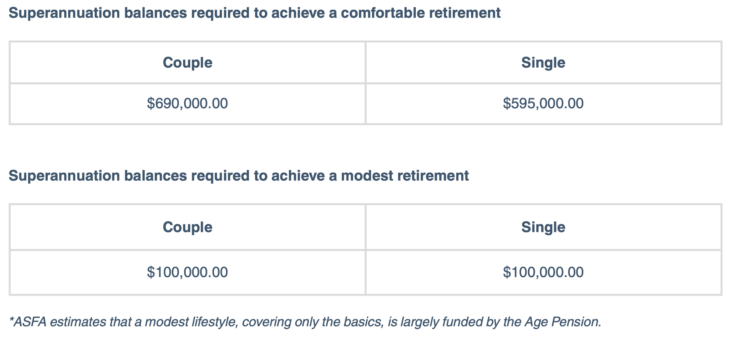 The Association of Superannuation Funds of Australia's (ASFA) estimate of how much money you'll need in retirement, depending on your lifestyle.